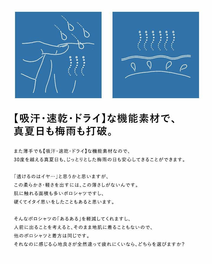 他の画像を見る サラッとドライでストレスの少ない、シンプルポロシャツ。 【メール便50】 ポロシャツ おしゃれ メンズ レディース ドライ 鹿の子 夏 着やせ 半袖ポロシャツ 軽量 速乾 UVカット 吸汗 薄手 スッキリ 体系 カバー 重ね着 カジュアル オフィス パティ BLUETO ブルート 2~3日でお届け 販売価格 ¥ 4,290 税込 在庫切れ カートに入れる お気に入りに登録する