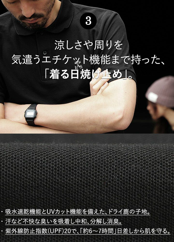 他の画像を見る 『汗臭さ』は抑えて、『男クサさ』を匂わせる。 (アリステア) ALISTAIR ポロシャツ 半袖 リブ衿 吸水 速乾 消臭 UVカット ドライ 鹿の子 バック プリント 販売価格 ¥ 4,400 税込 在庫切れ 詳細を見る お気に入りに登録する
