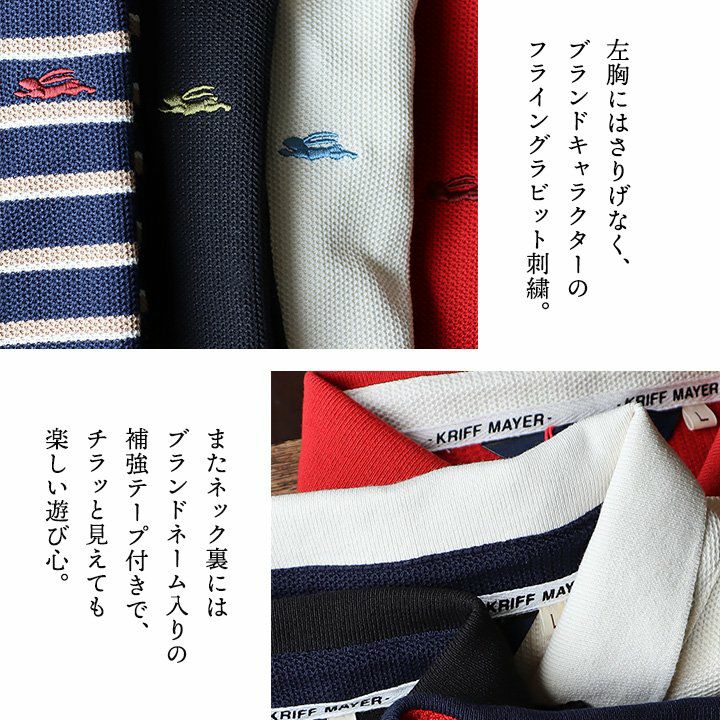 他の画像を見る このポロシャツには、さらさら、涼しい「裏」がある。 KRIFF MAYER クリフメイヤー ポロシャツ シャツ 半袖 メンズ レディース 無地 ボーダー 配色 鹿の子 接触冷感 涼しい ワンポイント 刺繍 うさぎ 伸縮性 薄手 ゆったり 大きいサイズ カジュアル 夏 パティ 2~3日でお届け 販売価格 ¥ 6,490 税込 在庫切れ カートに入れる お気に入りに登録する