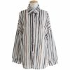 派手シャツは、存在感だけじゃなく頼りにもなります。 シャツ 長袖 レディース スタンドネック レトロ ストライプ 切り替え ワイド 袖口ゴム 薄手 涼しい 軽い 体型カバー 大きいサイズ 着痩せ 大人 カジュアル 夏 パティ sandy サンディー