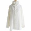 ひと際異彩を放つ、この「ひと癖」がいいんです。 【メール便50】 シャツ 長袖 涼しい レディース 変形ネック ハイネック タートル 連ボタン ワイド 着痩せ 首元 お尻 体系 カバー 薄手 軽い シアー 晩夏 初秋 UV エアコン対策 大きいサイズ カジュアル メンズライク パティ GENTIL ジャンティ