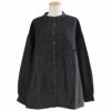 着慣れたシャツも、これだけで凝っている感。 シャツ 長袖 レディース バンドカラー コットン ポリエステル スモッキング 刺繍 しっかり生地 ゆったり 体型カバー カジュアル レトロ 秋 パティ