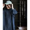 【モデルコメント】中は、カットソー2枚くらいは合わせても問題はありません。全体的に程好くゆとりがありました。 【客観的コメント】太ももが半分以上隠れる着丈の長さです。バランスの良いシルエットで着れていましたね。