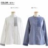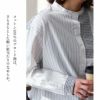 目を惹く柄シャツは、抜け感とすっきりさのあるもので シャツ 長袖 レディース バンドカラー ストライプ 無地 切り替え 綿100% コットン ブロード 軽い 薄手 すっきり 春 春服 カジュアル パティ