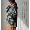 シャツなのにカットソー感覚。 シャツ 長袖 レディース 袖リブ すっきり 着痩せ バンドカラー チェック柄 マドラスチェック 綿100 コットン スラブ 薄手 軽い 伸縮性 ゆったり 大きいサイズ 体型カバー 秋 冬 カジュアル パティ