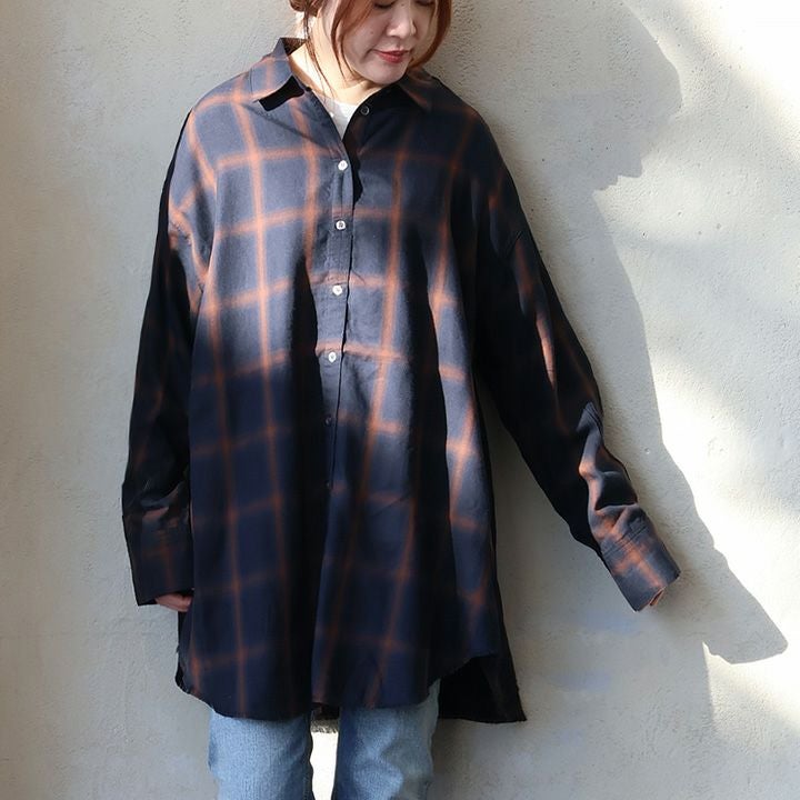 大人好みの深みと、ギャップある「ゆるっと」な着心地。 シャツ 長袖 レディース お尻隠れる オンブレチェック柄 先染め コットン 再生繊維 薄手 大きいサイズ 体型カバー カジュアル パティ