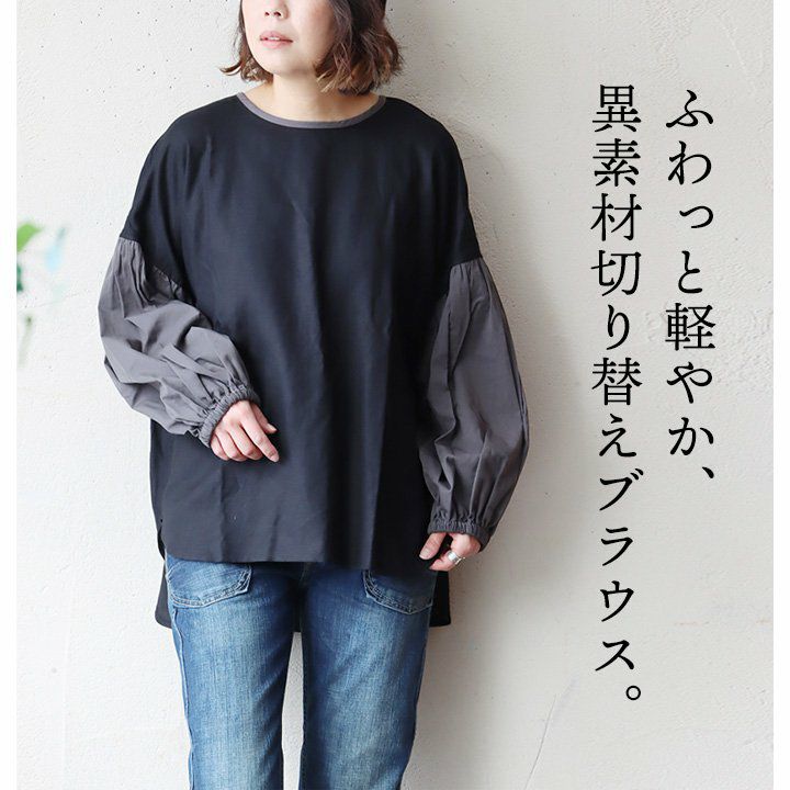 他の画像を見る 素材の違いで遊び、涼し気に。 ブラウス 長袖 レディース クルーネック 無地 異素材切り替え 綿100% 通気性 軽い 透け感 しっかり生地 袖ゴム 薄手 大きいサイズ 体型カバー ゆったり カジュアル PATY パティ 2~3日でお届け 販売価格 ¥ 6,490 税込 在庫切れ カートに入れる お気に入りに登録する