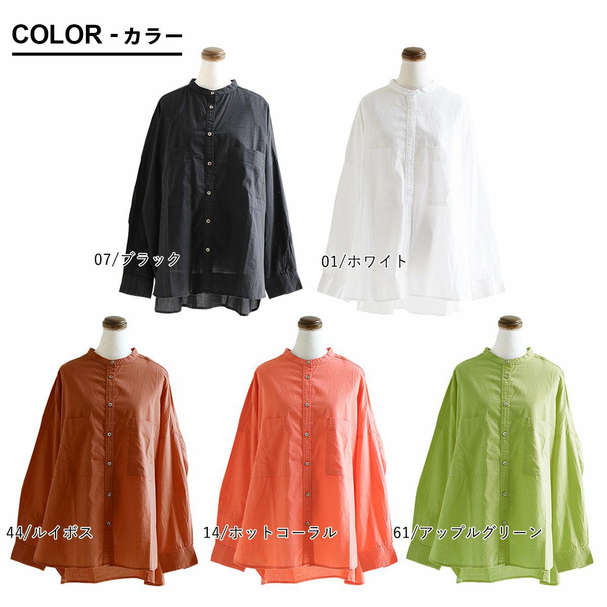 他の画像を見る ついつい手に取りたくなる、オーバーサイズシャツ。 シャツ 長袖 レディース バンドカラー 無地 ポケット付き 薄手 涼しい 通気性 軽い しっかり生地 大きいサイズ ゆったり 体型カバー 着痩せ カジュアル PATY パティ 2~3日でお届け 販売価格 ¥ 4,290 税込 在庫切れ カートに入れる お気に入りに登録する