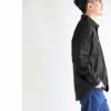【モデルコメント】中はタンクトップが着れるぐらいでした。全体的に多少ゆとりがありました。腰周りが細身でしたね。 【客観的コメント】お尻が全部隠れるぐらいの着丈でした。悪くないシルエットでした。