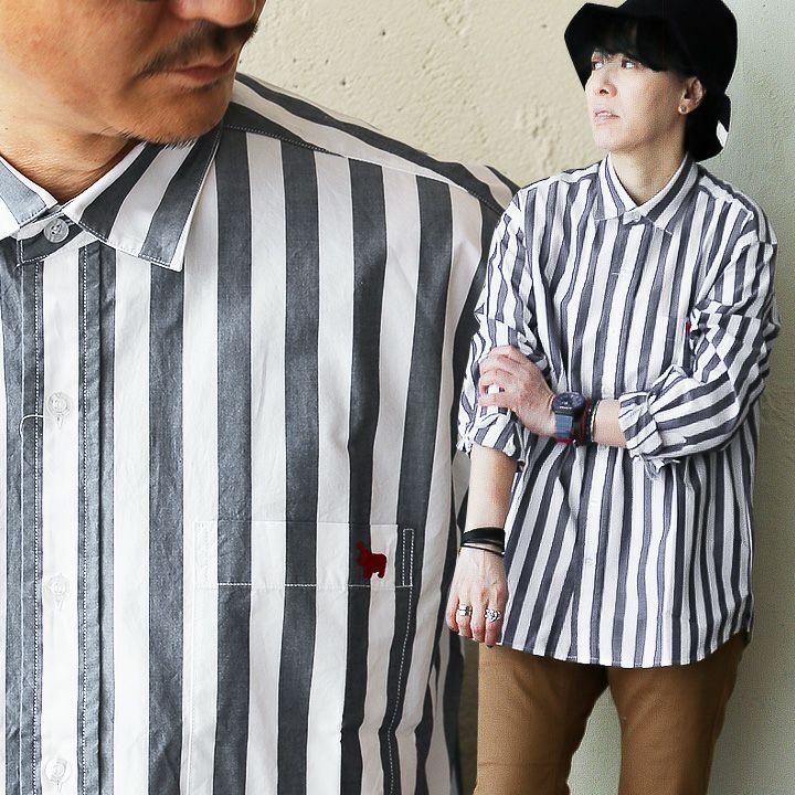 清潔感と上品さを持ちながらも、カジュアルスタイルにもスッとハマってくれる。 シャツ 長袖 レギュラーシャツ 羽織 重ね着 ロンドンストライプ 配色 カバ 刺繍 コットン100 ゆったり 大きい 体型カバー シワが目立ちにくい 動きやすい カジュアル レディース メンズ ユニセックス 40代 50代 春 春服 PATY paty s&nd セカンド