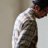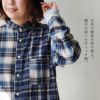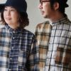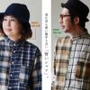 本体:起毛がかった滑らかな手触りのコットンとポリエステル素材からなるネルシャツ。伸縮性・透け感はありません。