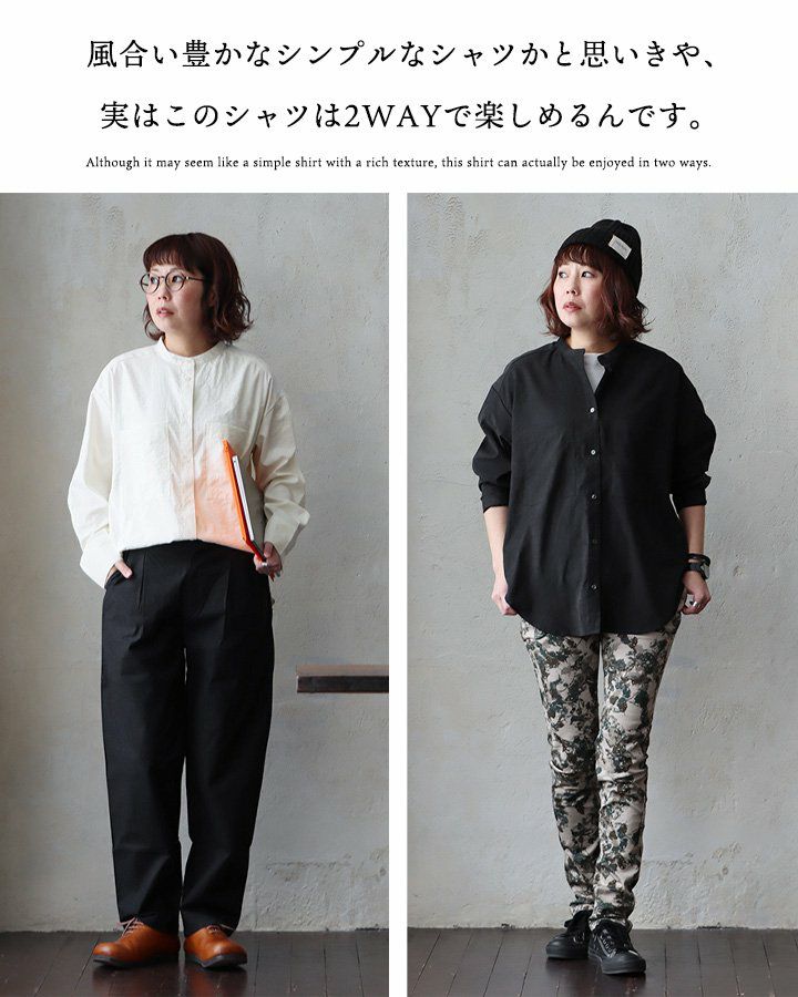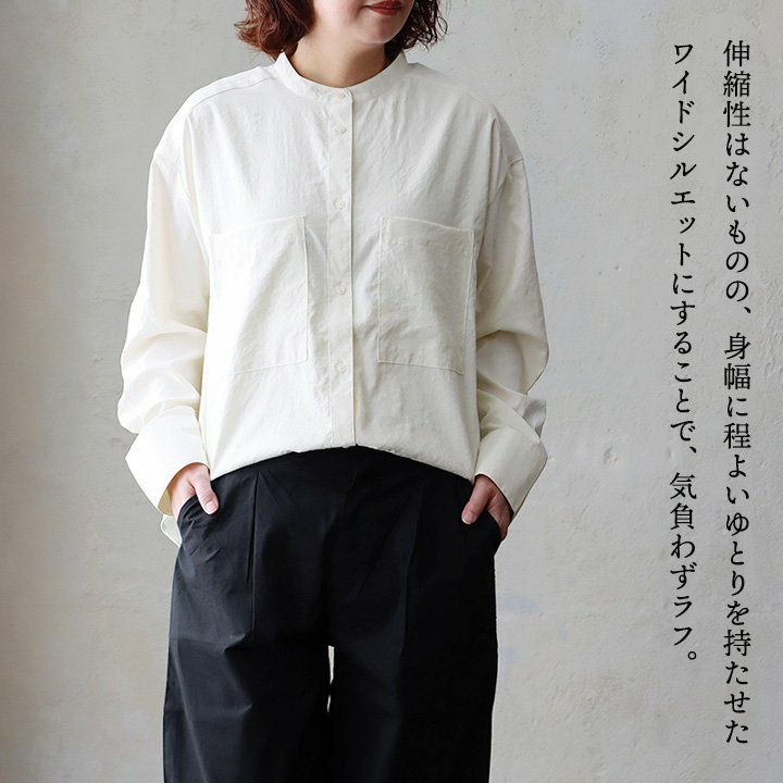 他の画像を見る バランス上手で、シンプルなのに個性的。 シャツ 長袖 バンドカラー レディース シャツイン ボトムイン ピーチ加工 マット 上品 軽い 薄手 2WAY ゆったり オーバーシャツ 体型カバー オフィスカジュアル パティ 2~3日でお届け 販売価格 ¥ 5,390 税込 在庫切れ カートに入れる お気に入りに登録する