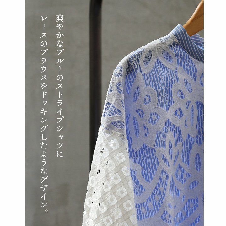 他の画像を見る エレガントにも、個性的にも表情を変える、繊細レース。 シャツ 長袖 レディース バンドカラー ストライプ レース 異素材切り替え 綿100 コットン ナイロン 軽い 通気性 薄手 すっきり 着痩せ 体型カバー 大人カジュアル 春 パティ en haut アンオー 2~3日でお届け 販売価格 ¥ 7,590 税込 在庫切れ カートに入れる お気に入りに登録する
