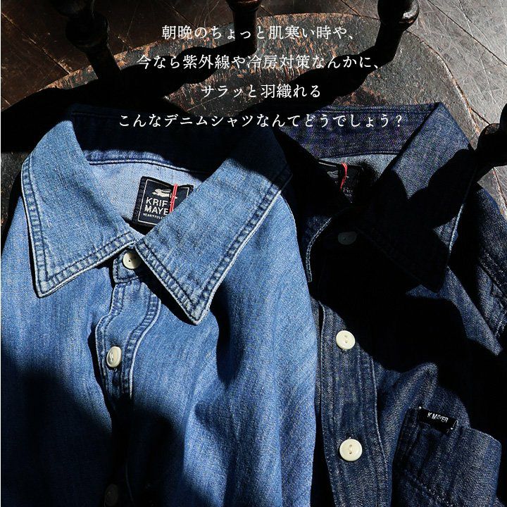 他の画像を見る サッと羽織れるデニムシャツがあるだけで、心強い。 KRIFF MAYER クリフメイヤー シャツ 長袖 メンズ レディース レギュラーカラー デニム 綿100 コットン 薄手 軽い 重ね着 体型カバー 大きいサイズ すっきり カジュアル パティ 2~3日でお届け 販売価格 ¥ 8,690 税込 在庫切れ カートに入れる お気に入りに登録する