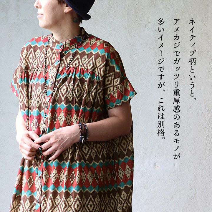 他の画像を見る 「渋ネイティブ」。 チュニック 半袖 レディース スタンドネック ワイド お尻隠れる 総柄 ネイティブ柄 薄手 涼しい ゆったり 体型カバー 大きいサイズ カジュアル ヴィンテージ 夏 夏服 パティ sandy サンディー 2~3日でお届け 販売価格 ¥ 7,590 税込 在庫切れ カートに入れる お気に入りに登録する