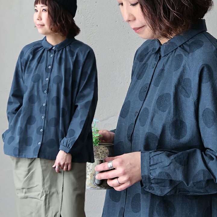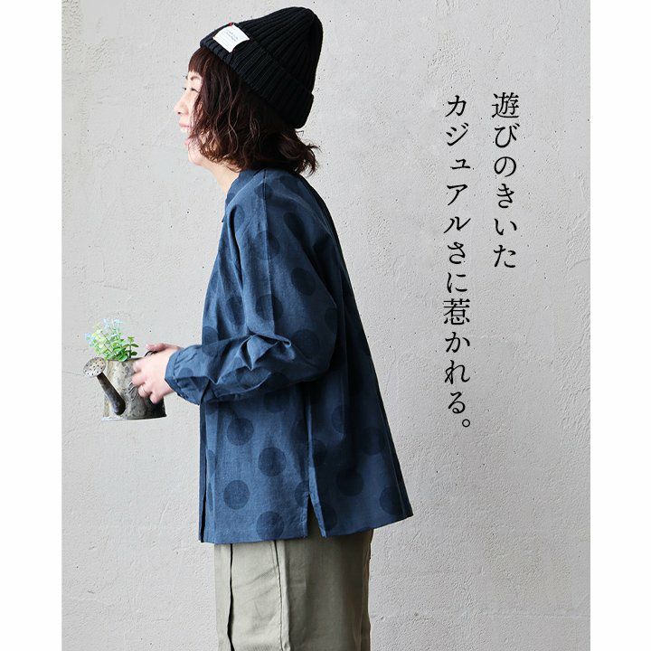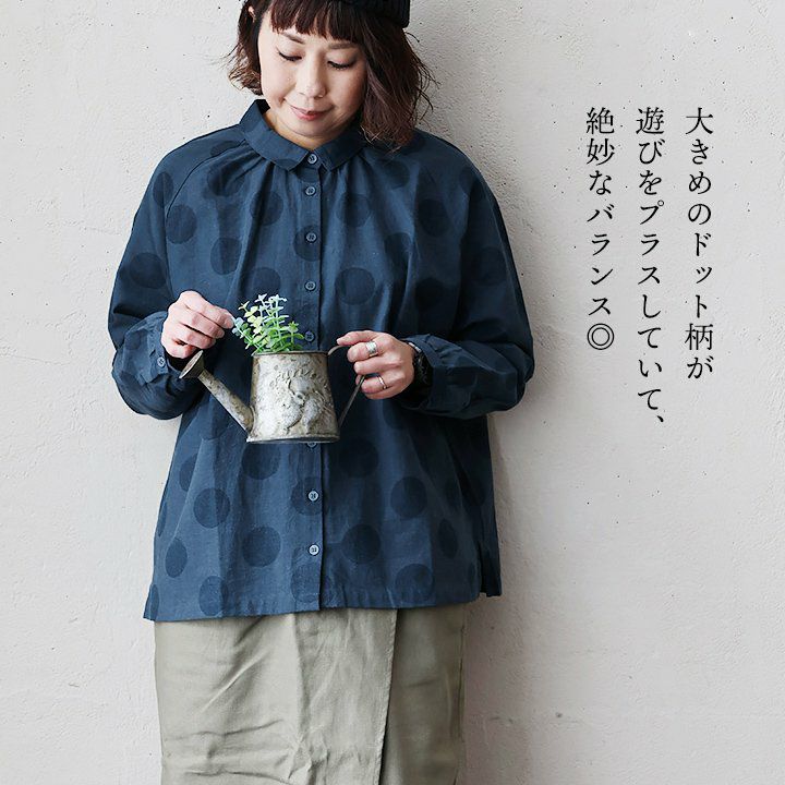 他の画像を見る 遊びのきいたカジュアルさに惹かれる。 ブラウス シャツ 長袖 レディース ちび襟 ドット柄 ドット 水玉 前開き 薄手 コットン リネン 綿麻 すっきり 着痩せ ネイビー 紺 ラクチン カジュアル PATY パティ 2~3日でお届け 販売価格 ¥ 3,850 税込 在庫切れ カートに入れる お気に入りに登録する