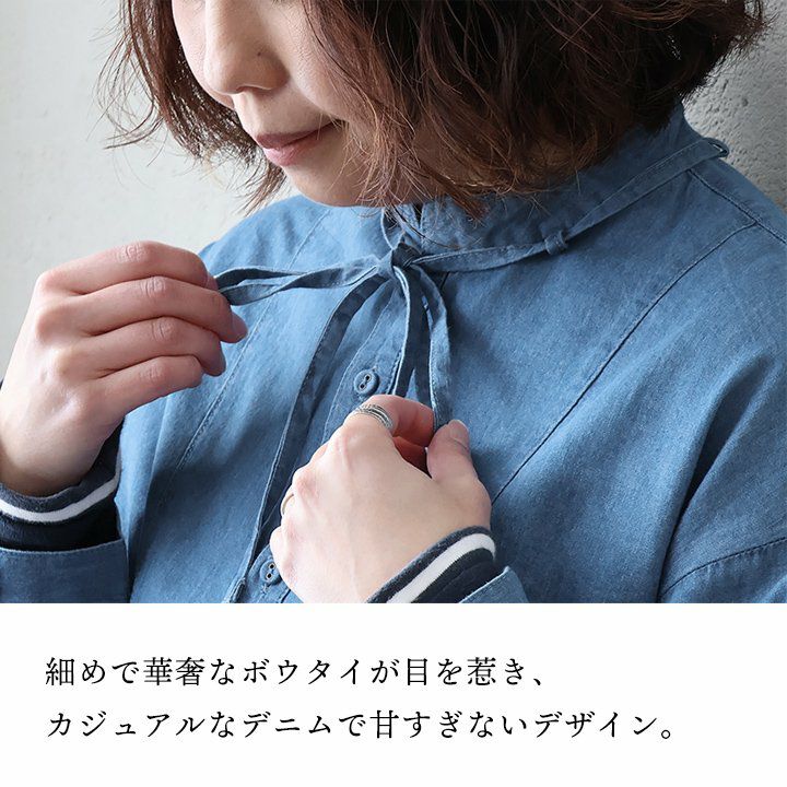 他の画像を見る カジュアルも良いけど、ちょっとした甘さが絶妙なバランスに。 ブラウス ボウタイブラウス デニム レディース ハイネック コットン100% 綿 リボン 薄手 軽い 体型カバー すっきり 大人カジュアル PATY パティ 2~3日でお届け 販売価格 ¥ 3,850 税込 在庫切れ カートに入れる お気に入りに登録する