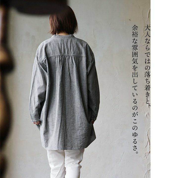 他の画像を見る ゆるっとラフに着られるのに、シャツらしいきちんと感。 シャツ チュニック お尻隠れる 長袖 レディース バンドカラー 無地 異素材切り替え 胸ポケット 袖カフス 綿100 薄手 軽い 着痩せ すっきり 体型カバー カジュアル 秋 パティ GENTIL ジャンティ 2~3日でお届け 販売価格 ¥ 7,590 税込 在庫切れ カートに入れる お気に入りに登録する