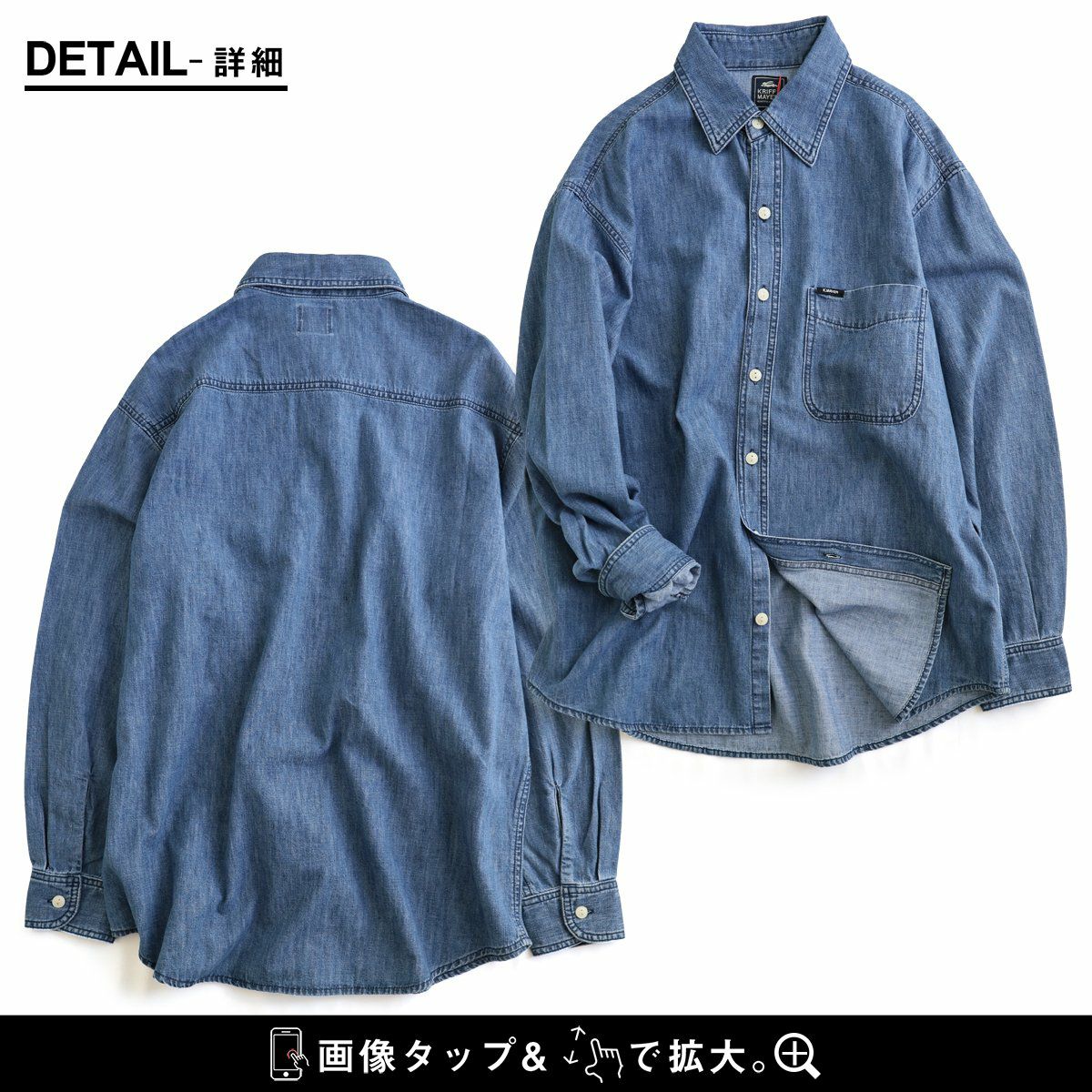 他の画像を見る サッと羽織れるデニムシャツがあるだけで、心強い。 KRIFF MAYER クリフメイヤー シャツ 長袖 メンズ レディース レギュラーカラー デニム 綿100 コットン 薄手 軽い 重ね着 体型カバー 大きいサイズ すっきり カジュアル パティ 2~3日でお届け 販売価格 ¥ 8,690 税込 在庫切れ カートに入れる お気に入りに登録する