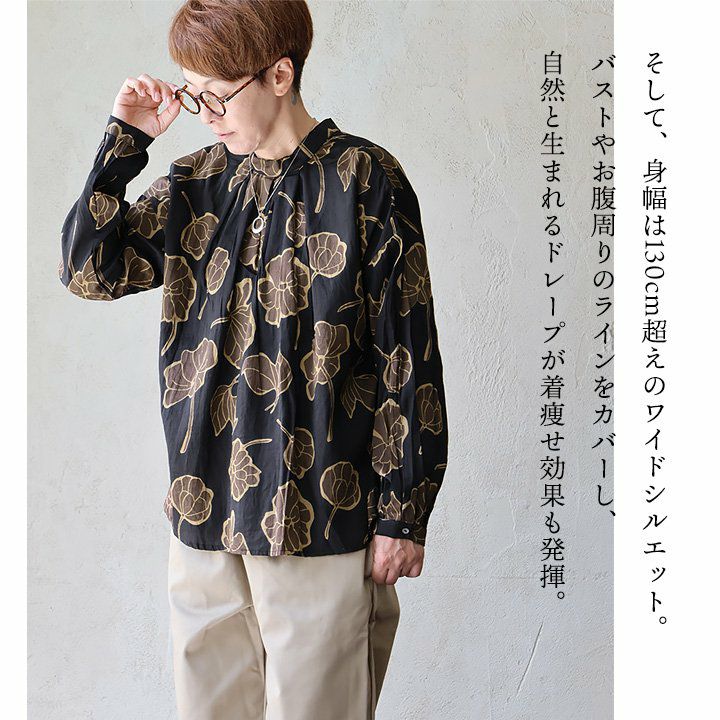 他の画像を見る 独得な柄で、どこか惹かれる「特別感」。 シャツ 長袖 レディース バンドカラー 前後 2WAY 総柄 プリント 花柄 インド 綿100 コットン 薄手 涼しい 軽い ゆったり 体型カバー 大きいサイズ カジュアル 夏 秋 パティ CALINER カリネ 2~3日でお届け 販売価格 ¥ 9,790 税込 在庫切れ カートに入れる お気に入りに登録する