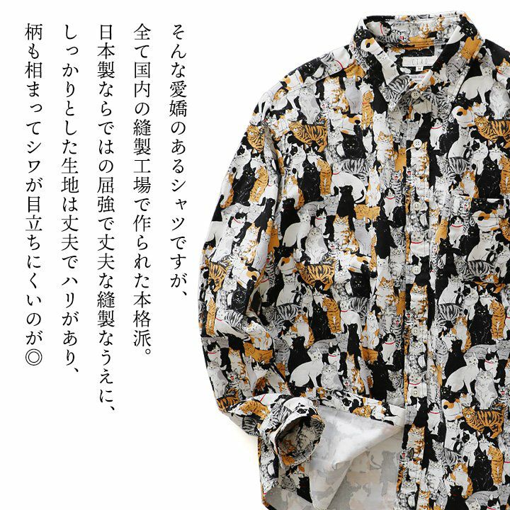他の画像を見る 猫、ネコ、ねこ。「にゃんこいっぱい」 シャツ レギュラーシャツ 長袖 メンズ レディース 猫 ねこ ネコ プリント 日本製 綿100 コットン しっかり生地 通気性 軽い ゆったり 大きいサイズ カジュアル 動物 アニマル ZOO 春 秋 冬 パティ 2~3日でお届け 販売価格 ¥ 7,590 税込 在庫切れ カートに入れる お気に入りに登録する