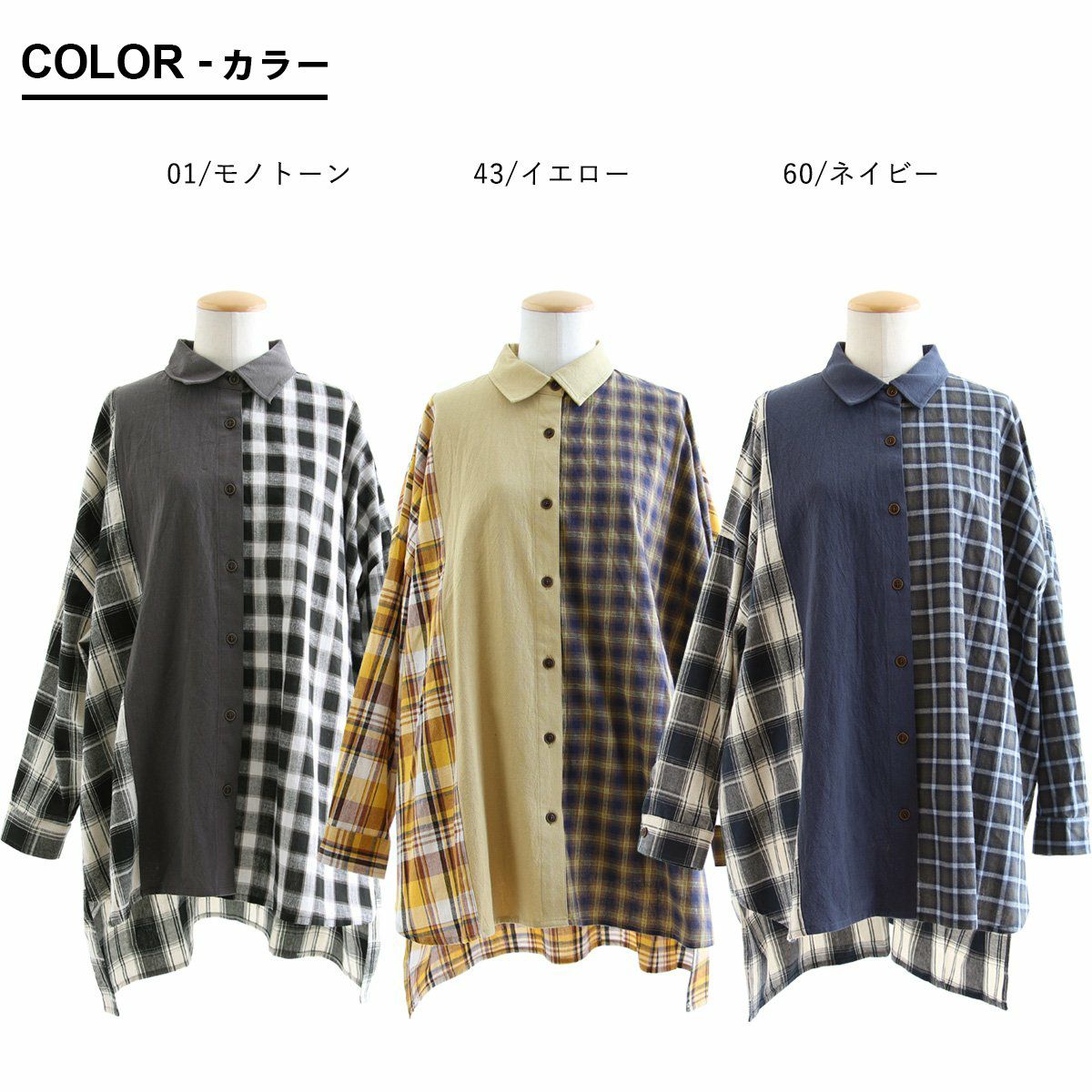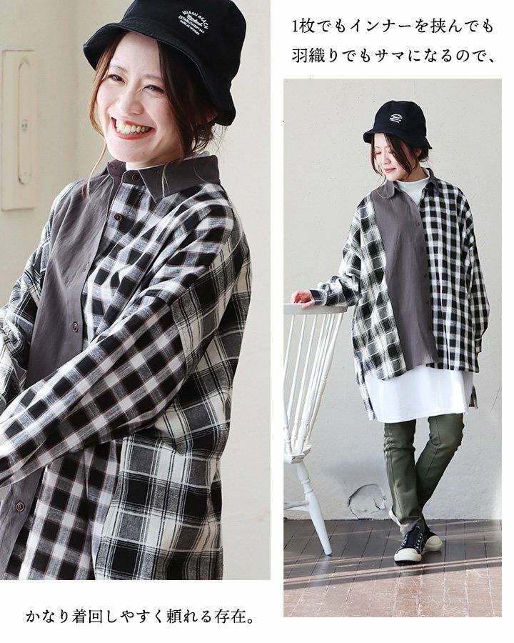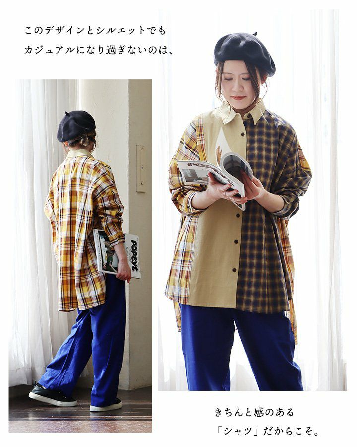 他の画像を見る 自然に着痩せする、大人好みのクレイジービッグシャツ。 チェックシャツ シャツ 長袖 レディース 着痩せ お尻隠れる 配色 異素材切り替え クレイジー チェック柄 無地 薄手 通気性 体型カバー 大きいサイズ 重ね着 春 春服 カジュアル パティ 2~3日でお届け 販売価格 ¥ 5,390 税込 在庫切れ カートに入れる お気に入りに登録する
