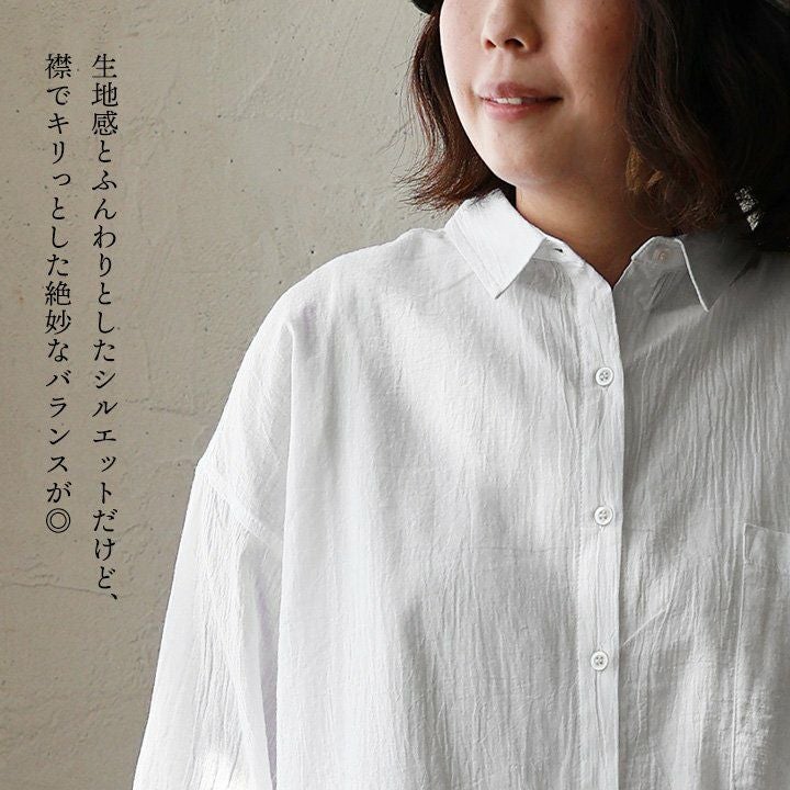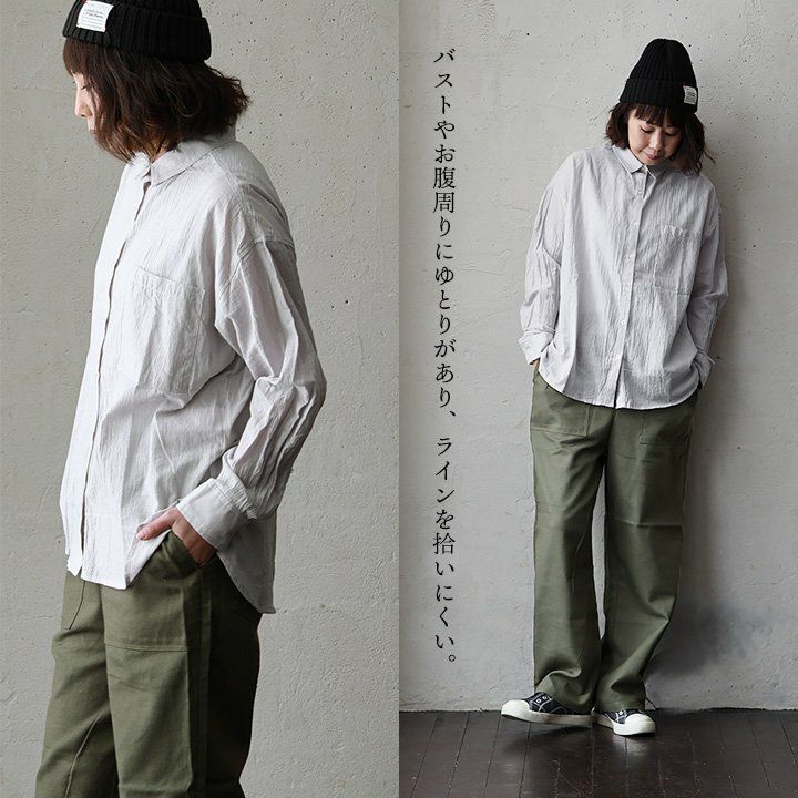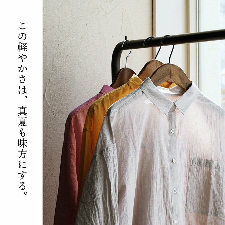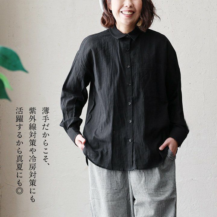 他の画像を見る この軽やかさは、真夏も味方にする。 シャツ シアーシャツ 長袖 レディース 綿100% コットン シワ加工 薄手 軽やか 通気性 涼しい 紫外線対策 体型カバー ゆったり 重ね着 春 春服 夏 夏服 カジュアル パティ 2~3日でお届け 販売価格 ¥ 5,390 税込 在庫切れ カートに入れる お気に入りに登録する