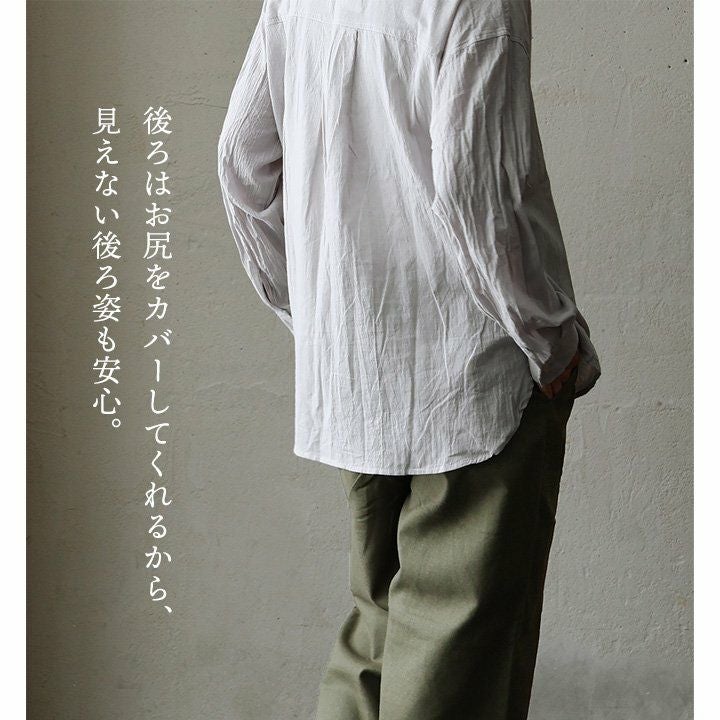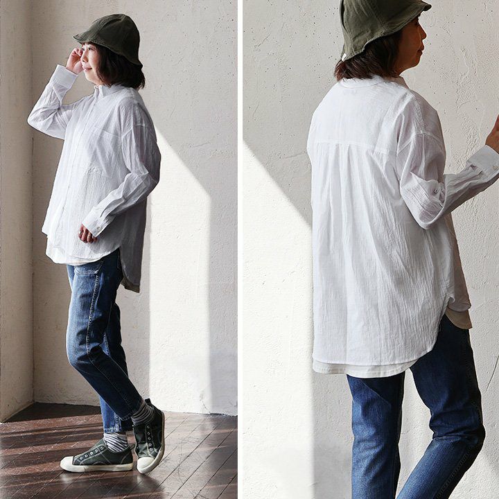 他の画像を見る きちんとして見えて、実はラフにゆるっと。 シャツ 長袖 レディース お尻隠れる バンドカラー 無地 綿100% コットン スラブ 薄手 軽い 通気性 涼しい 着痩せ 大きいサイズ ゆったり 体型カバー カジュアル 春 夏 パティ 2~3日でお届け 販売価格 ¥ 4,290 税込 在庫切れ カートに入れる お気に入りに登録する