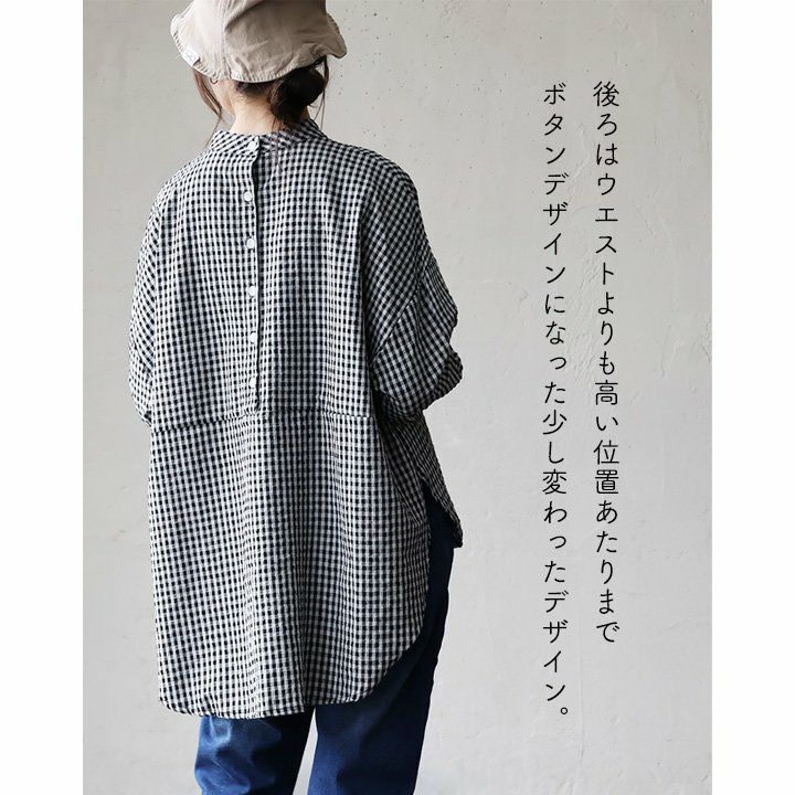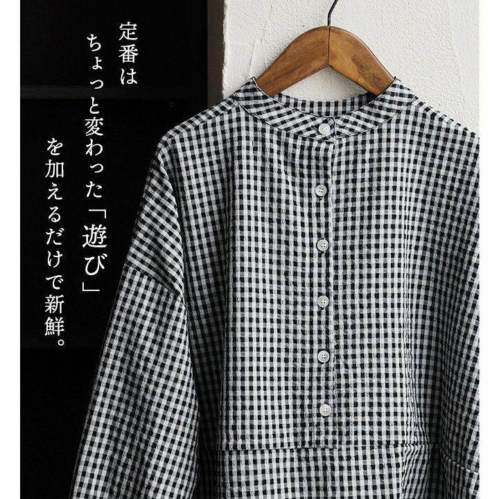 他の画像を見る 定番はちょっと変わった「遊び」を加えるだけで新鮮。 シャツ 長袖 レディース バンドカラー お尻隠れる 着痩せ 後ろボタン ギンガムチェック コットン シアサッカー 伸縮性 軽い 涼しい ゆったり 体型カバー 大きいサイズ カジュアル 春 夏 パティ 2~3日でお届け 販売価格 ¥ 5,390 税込 在庫切れ カートに入れる お気に入りに登録する