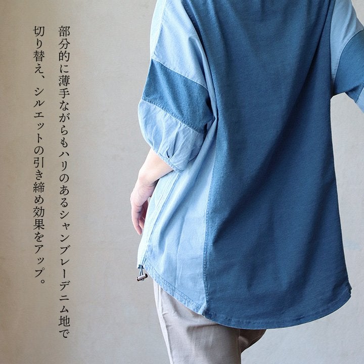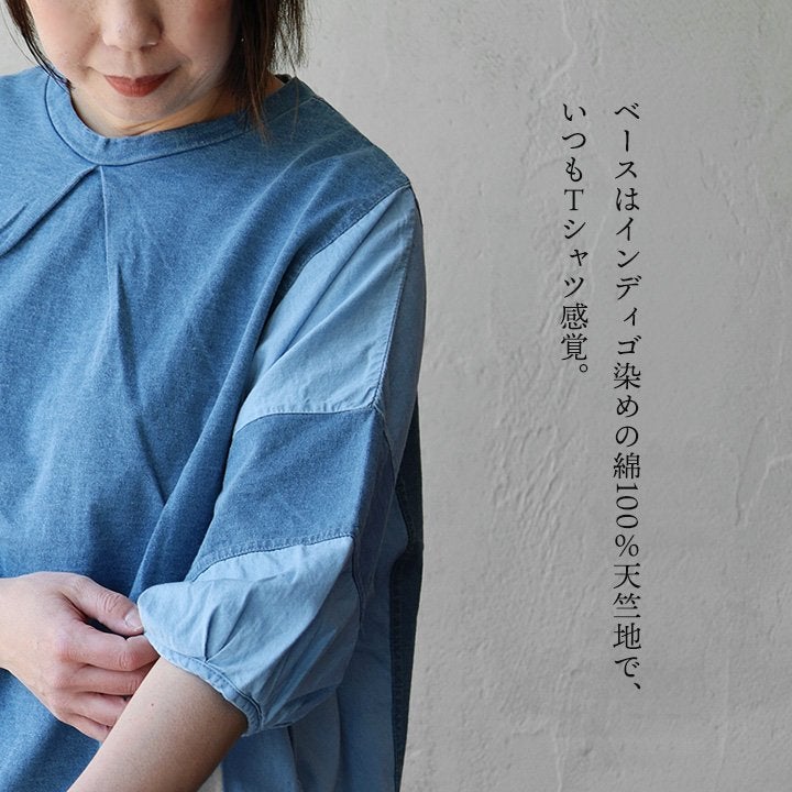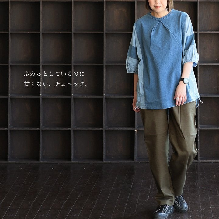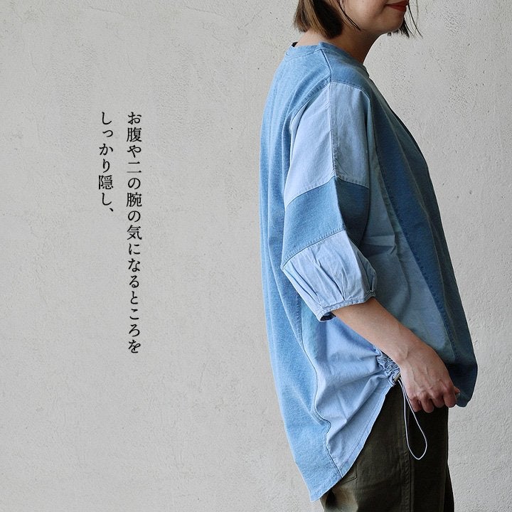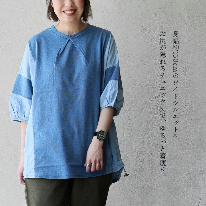他の画像を見る ゆるさも、デニムも欲しい人へ。 チュニック 6分袖 レディース カットソー デニム インディゴ 天竺 綿100% 薄手 配色 着痩せ 二の腕 体系 カバー バルーンスリーブ 半端袖 夏 かっこいい カジュアル パティ 予約販売 販売価格 ¥ 5,390 税込 詳細を見る お気に入りに登録する