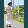 本体:薄手で麻レーヨン特有のひんやり感があり、軽やか。繊維のチクチク感はほぼなく、ドライで褪せたようなムラのある色合いと質感が特徴的。横・斜め方向に伸縮性があり、光にかざすと透け感があります。