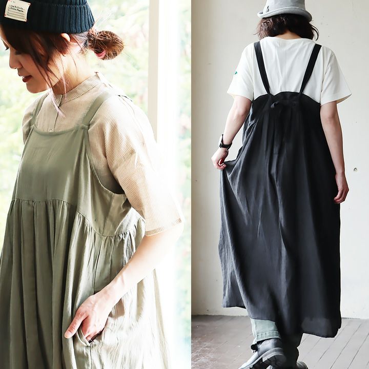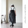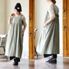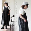 綿麻レーヨン素材のエプロンワンピース。透け感があり涼し気で軽やかな生地です。サラッとしつつも滑らかで柔らかい素材感になっています。伸縮性はありません。