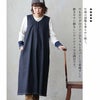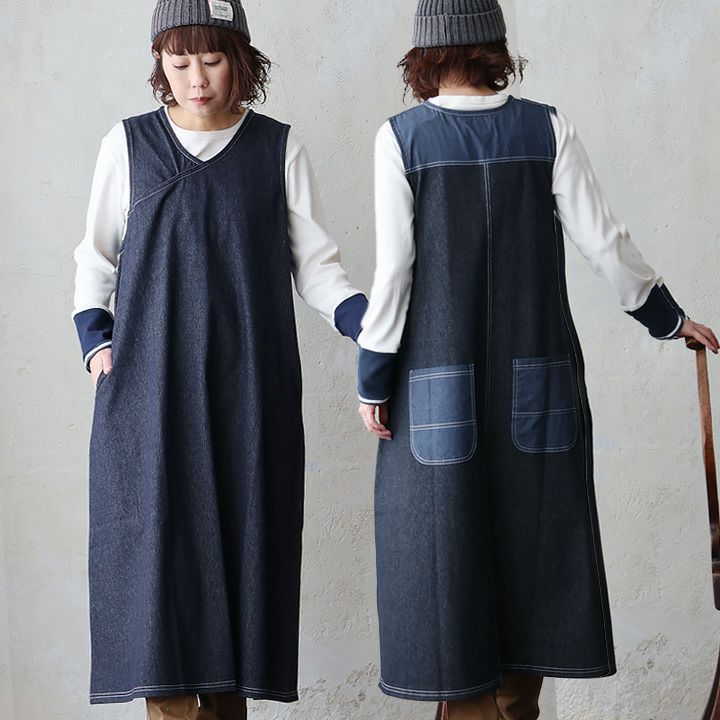 部屋着並みのリラックス感で、街着な見た目。 ワンピース ワンピ ノースリーブ レディース ロング丈 マキシ丈 カシュクール Vネック 配色ステッチ ストレッチ カットデニム 伸縮性 柔らかい 動きやすい ポケット ゆったり 体型カバー 着痩せ 春 パティ BLUETO ブルート