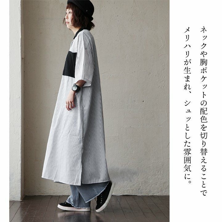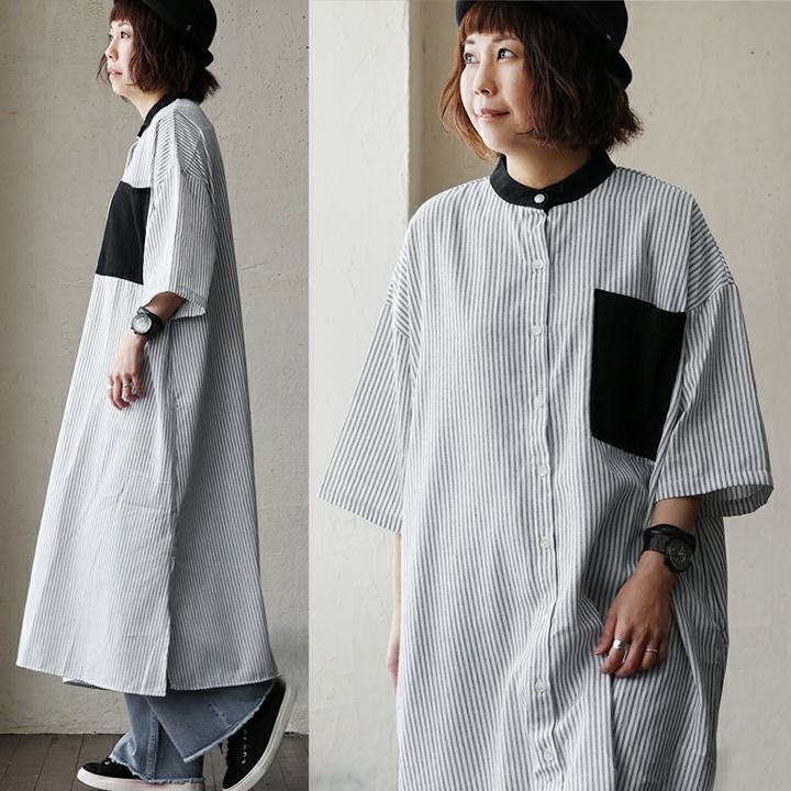 他の画像を見る 大人好みのシャツを、そのままワンピに。 ワンピース シャツ ワンピ 半袖 レディース バンドカラー 配色切り替え ストライプ 綿100% コットン 布帛 ゆったり 体型カバー 大きいサイズ カジュアル 春 夏 パティ 2~3日でお届け 販売価格 ¥ 7,590 税込 在庫切れ カートに入れる お気に入りに登録する