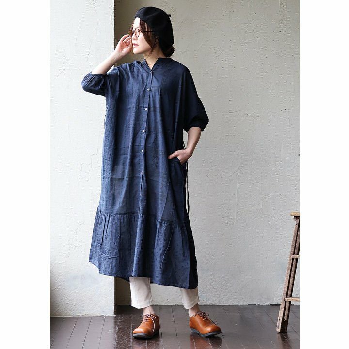 他の画像を見る 清涼感ある「藍の花」。 SLOW HANDS スローハンズ ワンピース ワンピ 長袖 バンドカラー ロング丈 レディース 綿100 コットン ブロックプリント 手作業 花柄 涼しい 軽い 薄手 体型カバー カジュアル 春 夏 秋 パティ 販売価格 ¥ 21,780 税込 在庫切れ カートに入れる お気に入りに登録する