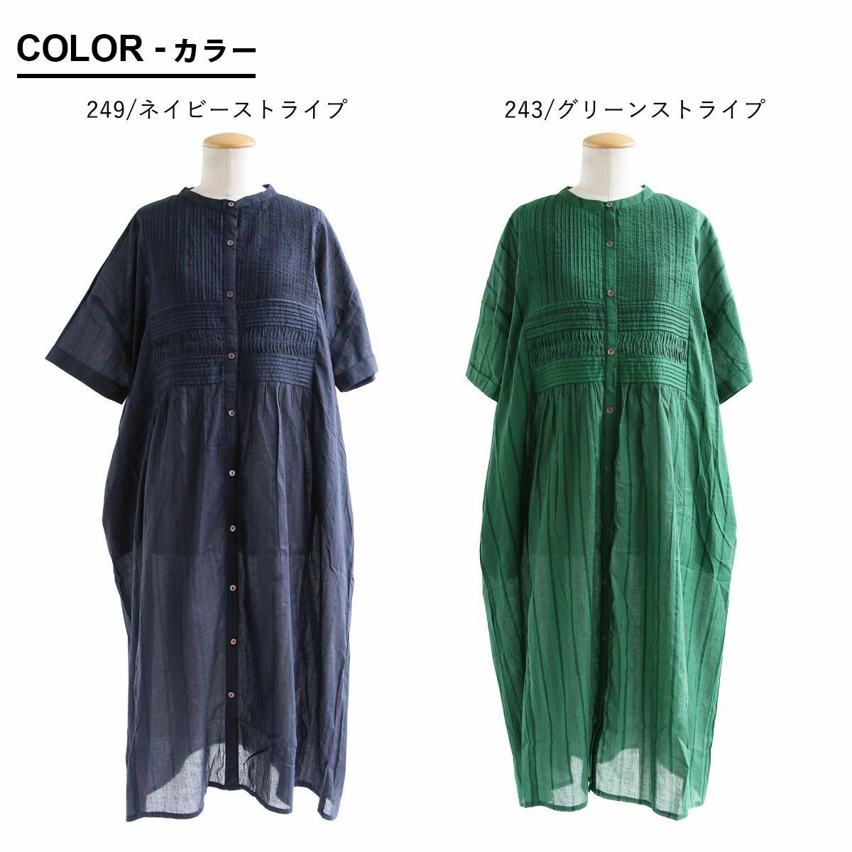 他の画像を見る これはつい、見惚れる。 ワンピース シャツワンピ 5分袖 バンドカラー レディース ピンタック ストライプ 綿100% コットン 薄手 通気性 涼しい シアー 軽い 体型カバー 大きいサイズ ゆったり すっきり 着痩せ カジュアル 夏 夏服 パティ 2~3日でお届け 販売価格 ¥ 6,490 税込 在庫切れ カートに入れる お気に入りに登録する