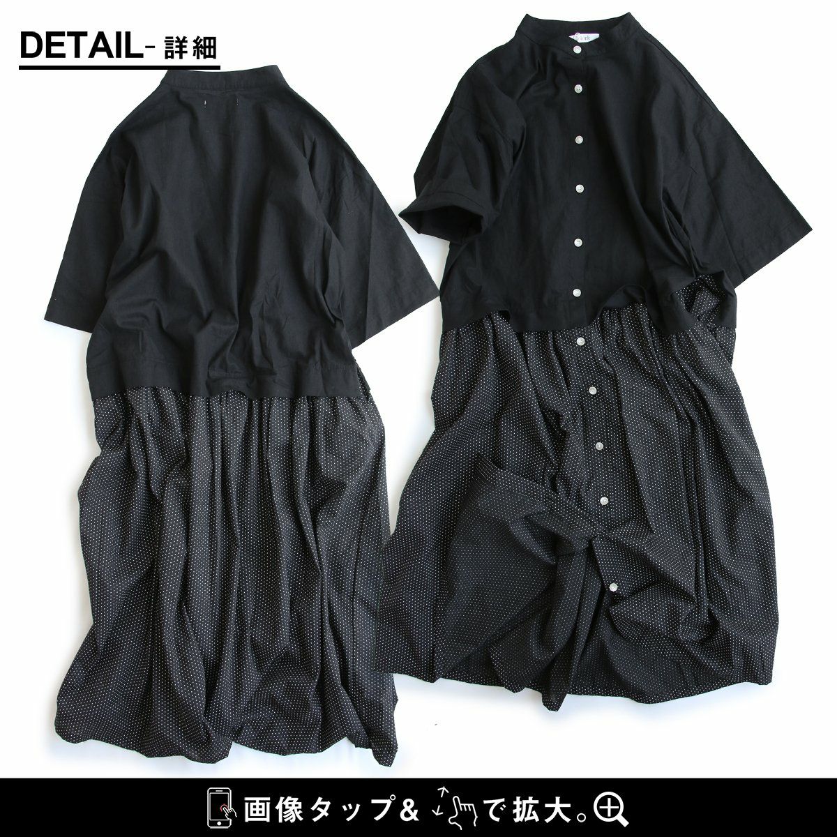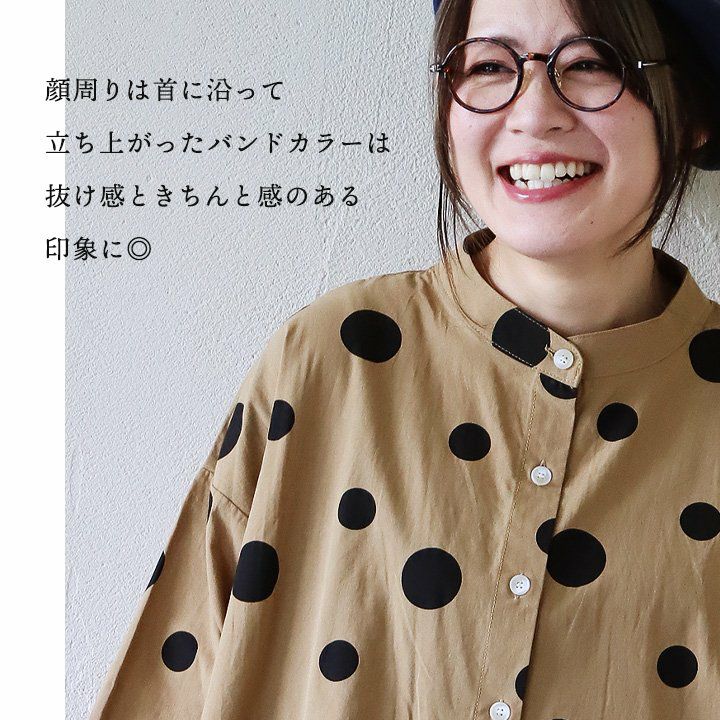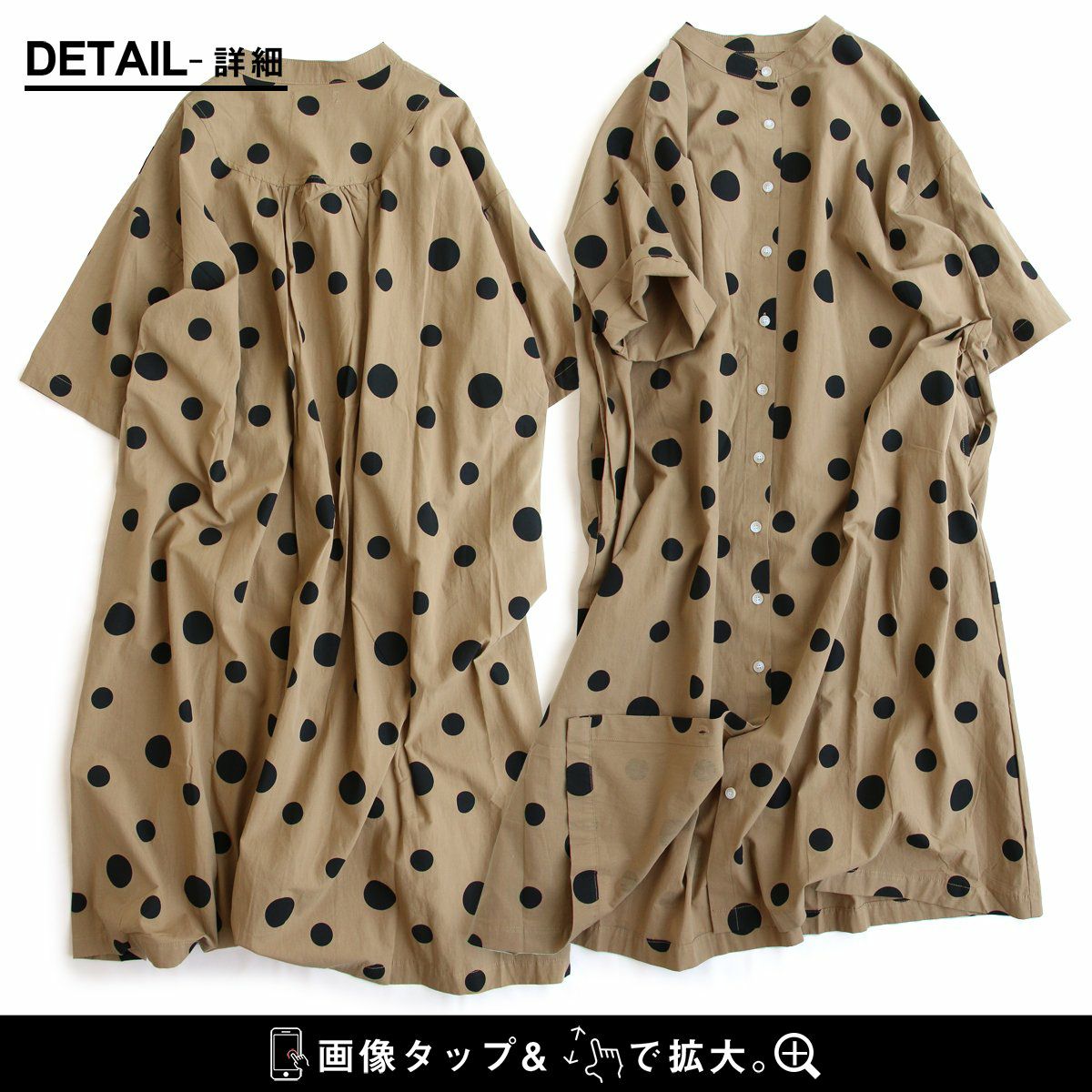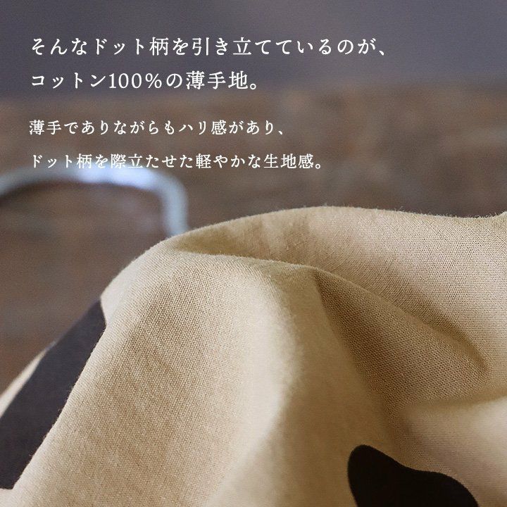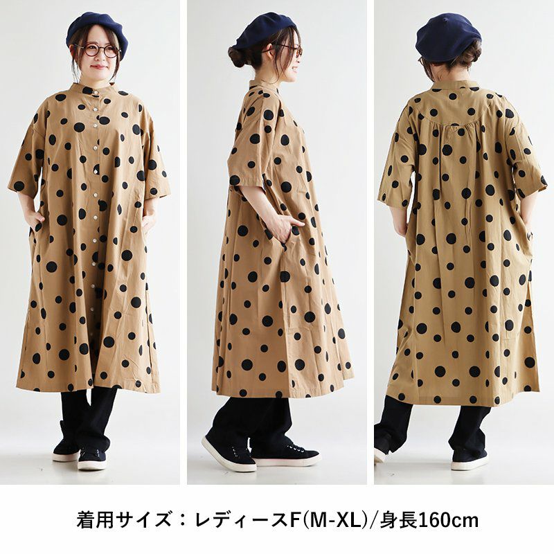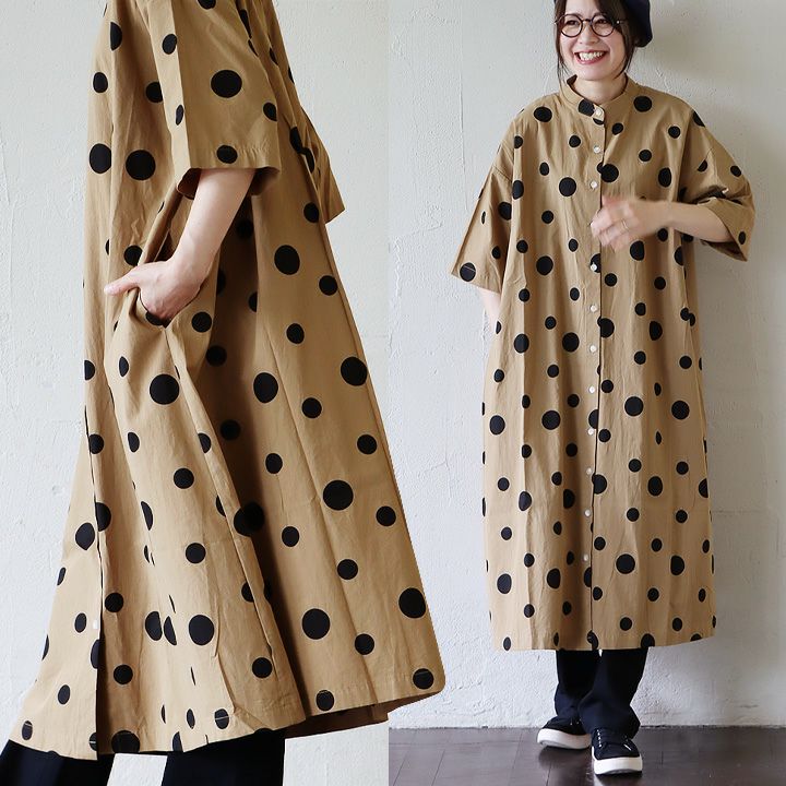 他の画像を見る ふわっと軽やかで、いつもより落ち着きあるドット柄。 ワンピース ワンピ 半袖 レディース バンドカラー ドット柄 綿100 コットン 薄手 通気性 軽い ゆったり 体型カバー カジュアル 夏 夏服 パティ COLORK カラック 販売価格 ¥ 7,590 税込 在庫切れ カートに入れる お気に入りに登録する