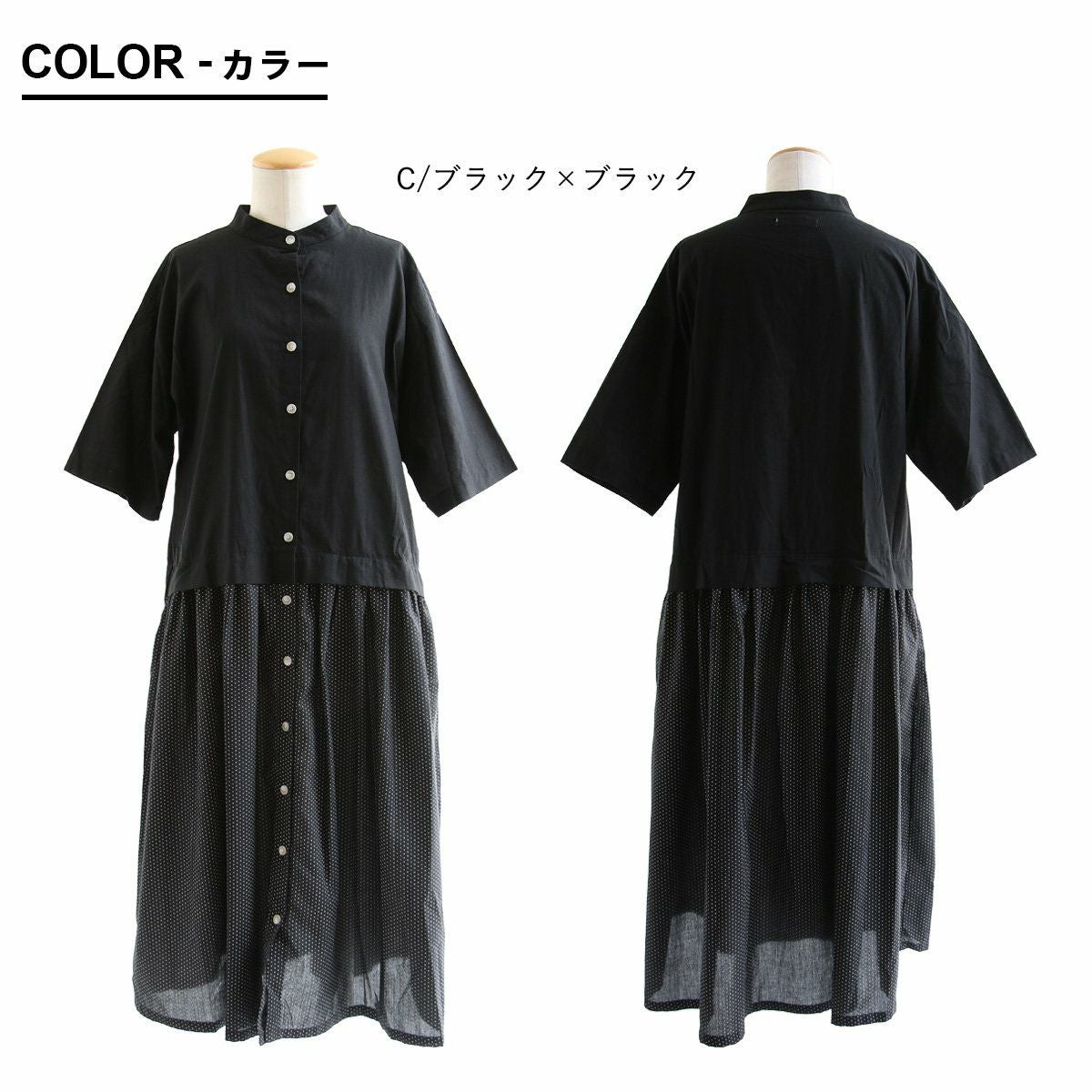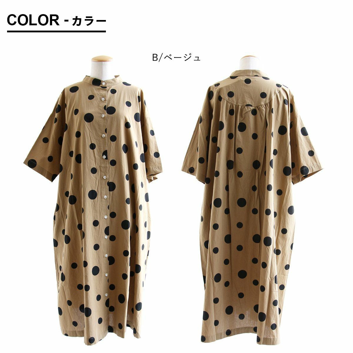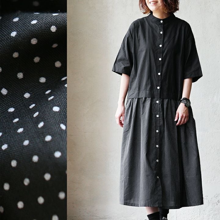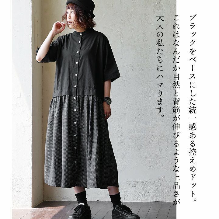 他の画像を見る 自然と背筋の伸びる『ブラックドット』。 ワンピース 半袖 レディース ロング丈 バンドカラー 無地 ドット柄 綿100 コットン 薄手 軽い 涼しい ゆったり 体型カバー カジュアル 夏 夏服 パティ COLORK カラック 販売価格 ¥ 8,690 税込 在庫切れ カートに入れる お気に入りに登録する