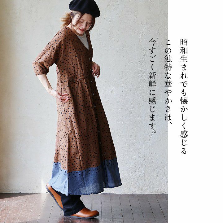 他の画像を見る 「モダンな昭和レトロ」が今、新鮮。 ワンピース ロング丈 レディース Vネック ドット柄 総柄 配色切り替え 綿100 コットン 手 染 薄手 涼しい 通気性 軽い ゆったり 大きいサイズ 体型カバー カジュアル 春 夏 秋 パティ CALINER カリネ 2~3日でお届け 販売価格 ¥ 10,780 税込 在庫切れ カートに入れる お気に入りに登録する