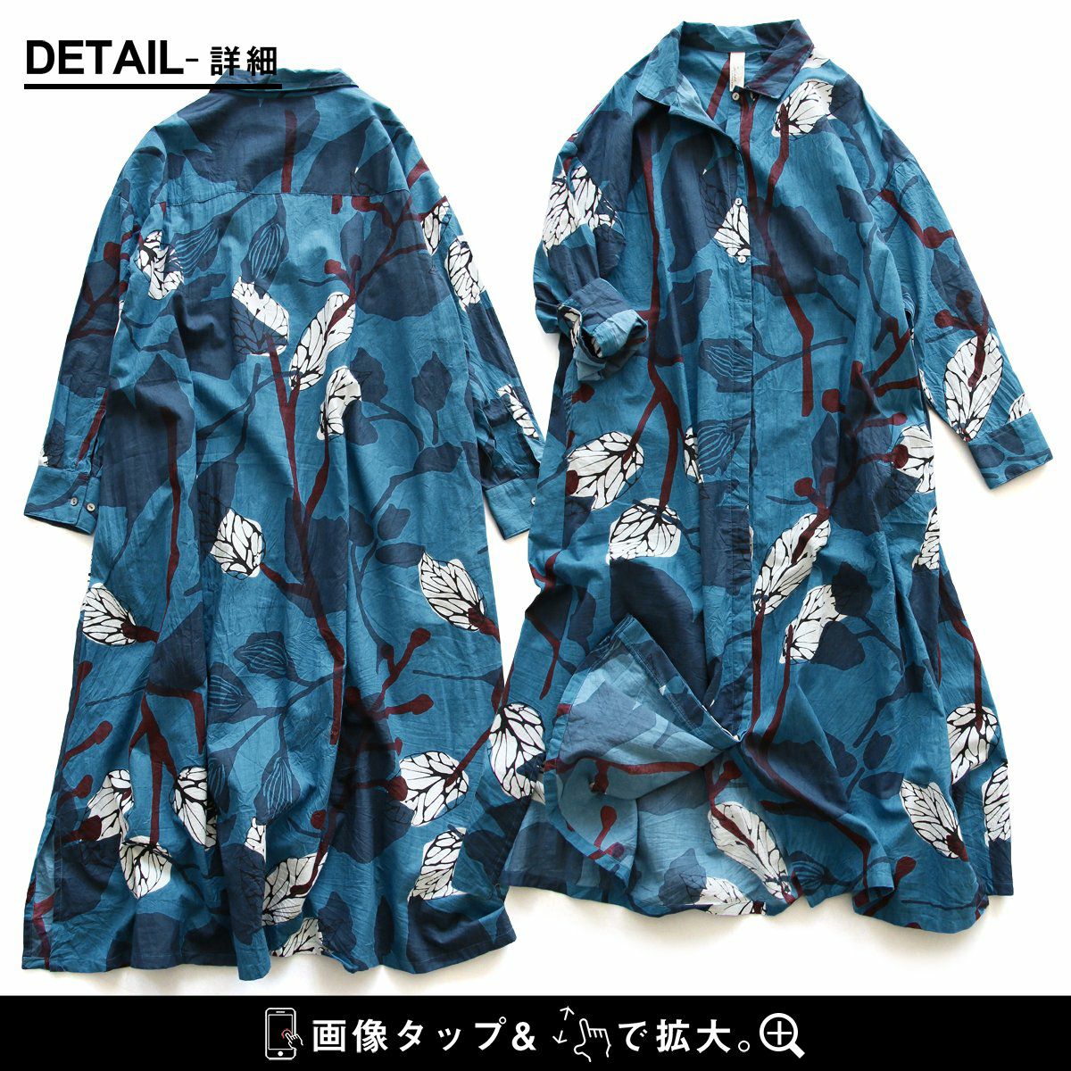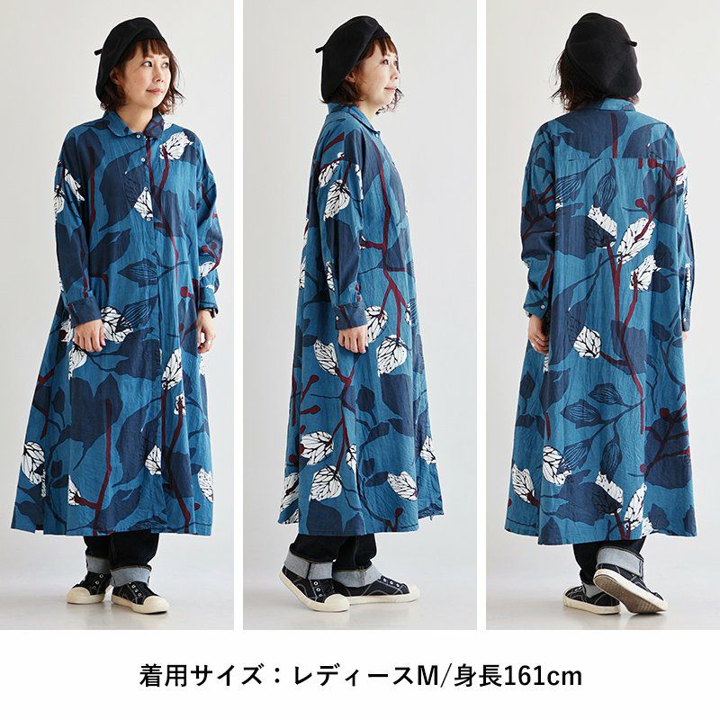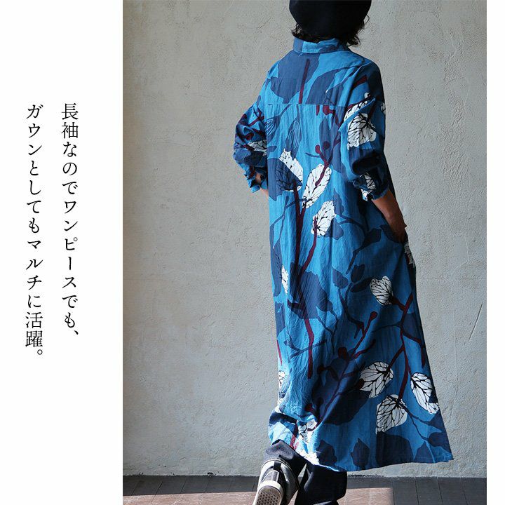 他の画像を見る 鮮やかな「青」に映えるボタニカル。 ワンピース ワンピ 長袖 レディース ロング丈 前開き ボタニカル柄 手 染 綿100 コットン 薄手 通気性 軽い ゆったり 体型カバー カジュアル 春 夏 秋 パティ CALINER カリネ 2~3日でお届け 販売価格 ¥ 10,780 税込 在庫切れ カートに入れる お気に入りに登録する