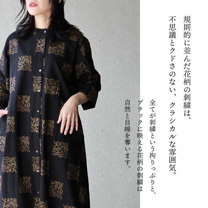 他の画像を見る ブラックに映える「刺繍」。 ワンピース ワンピ ロング丈 長袖 レディース バンドカラー 綿100 コットン 薄手 花柄 刺繍 前後 2WAY 体型カバー ゆったり 大きいサイズ カジュアル 春 夏 秋 パティ CALINER カリネ 2~3日でお届け 販売価格 ¥ 15,180 税込 在庫切れ カートに入れる お気に入りに登録する