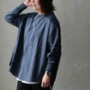 本体:薄手で柔らかくも、ハリのある独特の質感の布帛地。真夏以外はサラっと着られる質感で、伸縮性はなく、光にかざすと透け感があります。