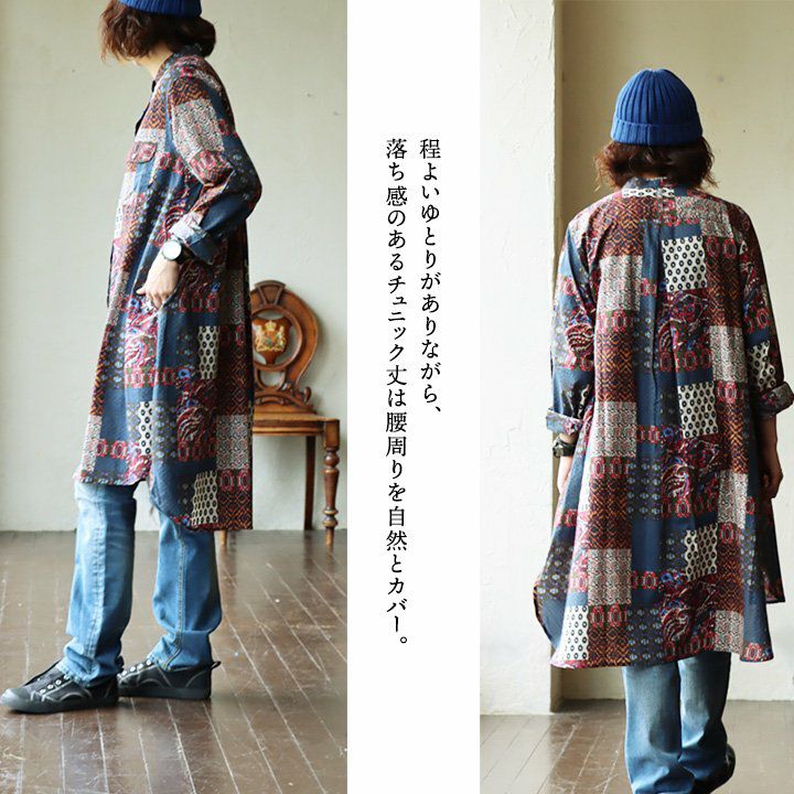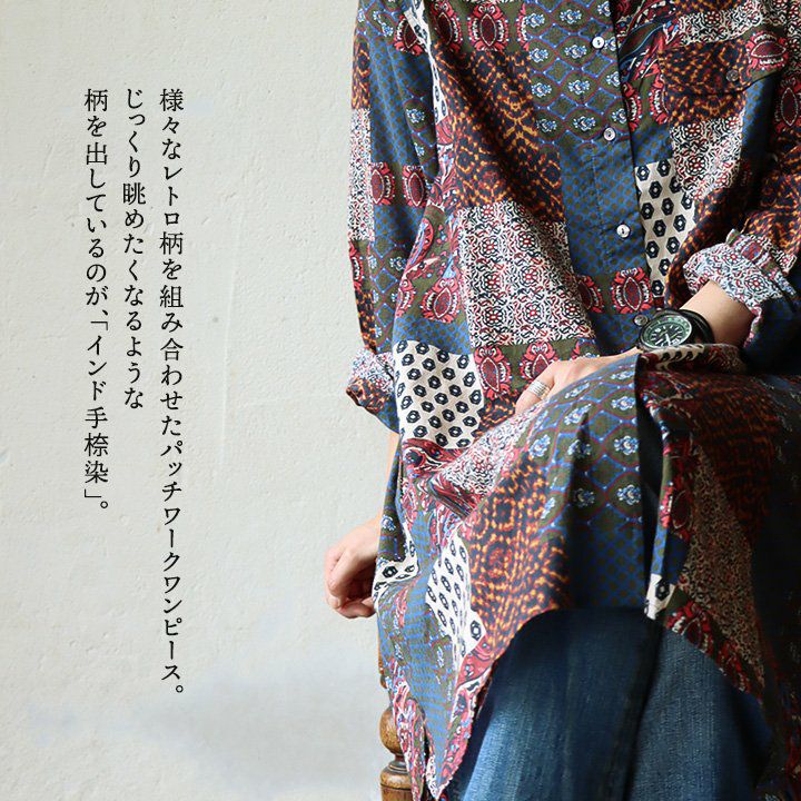 他の画像を見る 贅沢なレトロ感。 チュニック 長袖 ロング丈 お尻隠れる 着痩せ すっきり レトロ柄 パッチワーク 綿100% インド綿 手 染 薄手 涼しい 体型カバー カジュアル 夏 夏服 パティ CALINER カリネ 2~3日でお届け 販売価格 ¥ 9,790 税込 在庫切れ カートに入れる お気に入りに登録する