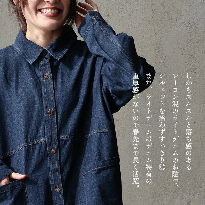 他の画像を見る この丈、このゆるさで「デニム」なのが良い。 チュニック シャツチュニック 長袖 レディース お尻隠れる デニム ライトデニム インディゴ ノンストレッチ 大きいサイズ ゆったり カジュアル 秋 冬 パティ GENTIL ジャンティ 2~3日でお届け 販売価格 ¥ 7,590 税込 在庫切れ カートに入れる お気に入りに登録する