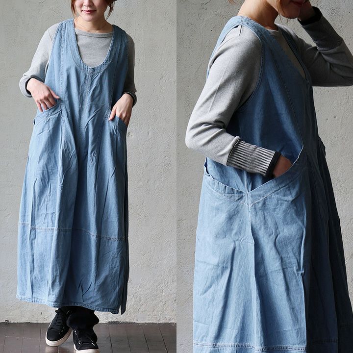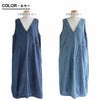 ラインを拾わず、目線は奪う。 ジャンパースカート ジャンスカ レディース ノースリーブ Vネック コットン デニム 薄手 軽い 大きいサイズ 体型カバー 着痩せ すっきり 重ね着 カジュアル 秋 パティ