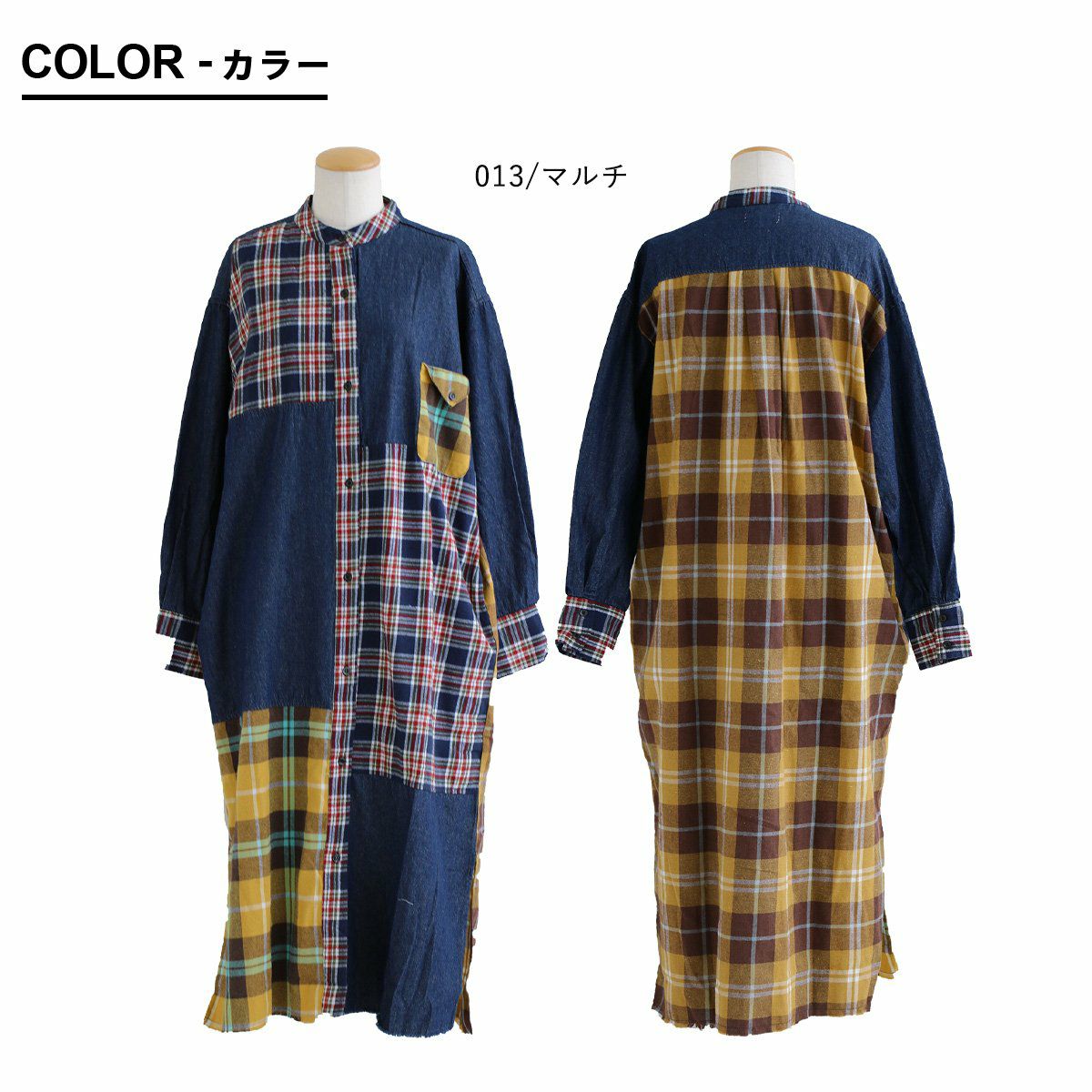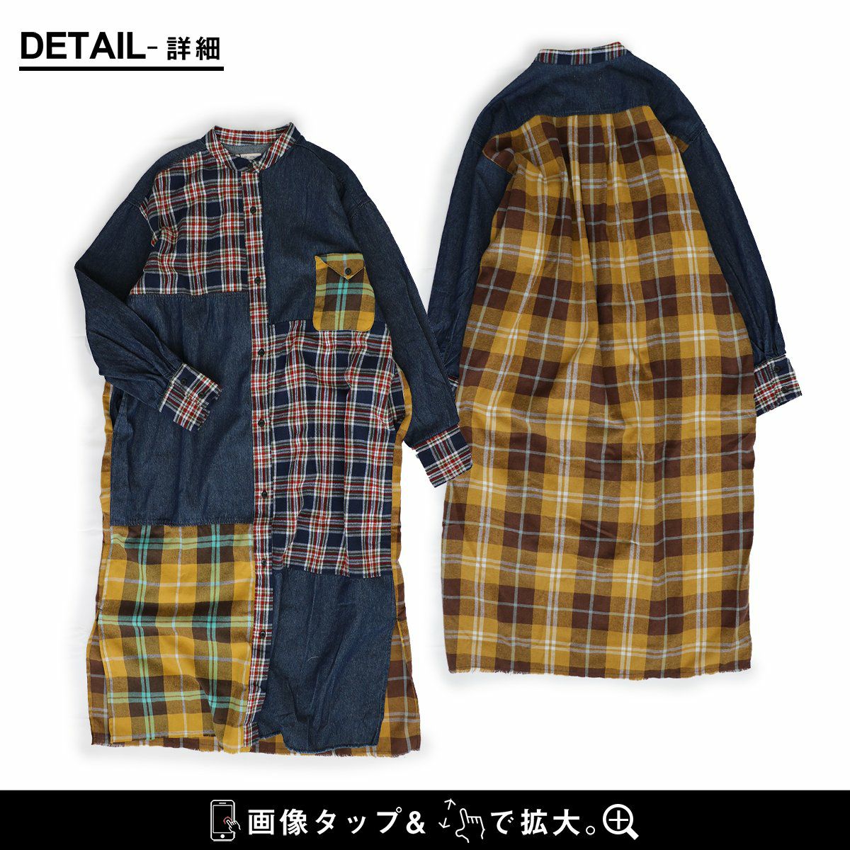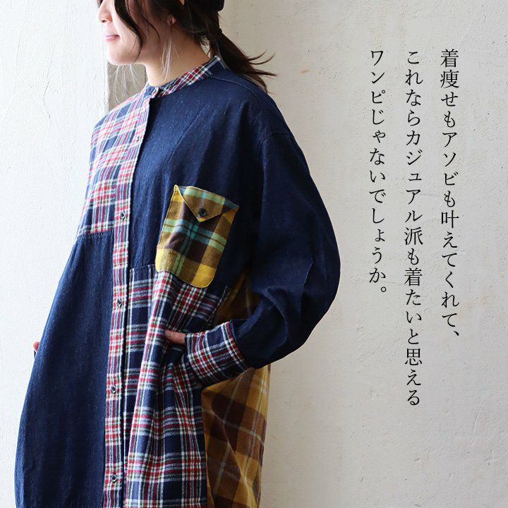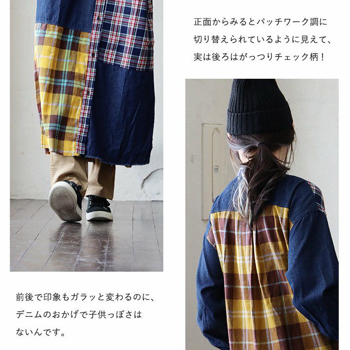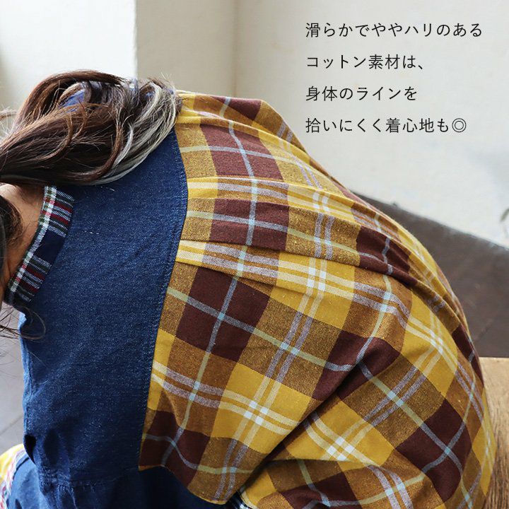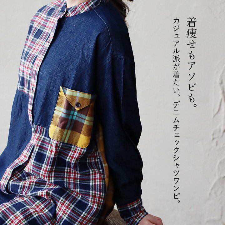 他の画像を見る 着痩せもアソビも。デニムチェックシャツワンピ。 ワンピース シャツワンピ レディース ノーカラー デニム チェック 柄配色切り替え クレイジー コットン 綿100 大きいサイズ ゆったり 着痩せ 体型カバー カジュアル PATY 2~3日でお届け 販売価格 ¥ 7,590 税込 在庫切れ カートに入れる お気に入りに登録する