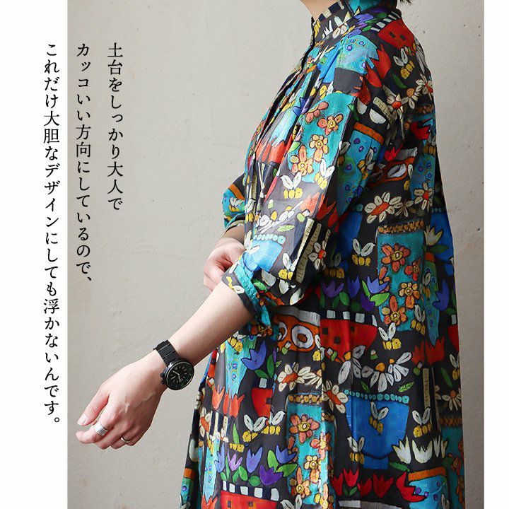 他の画像を見る 派手シャツは、存在感だけじゃなく頼りにもなります。 ワンピース ワンピ レディース スタンドカラー 7分袖 総柄 レトロ 綿100% コットン 薄手 軽い ポケット 体型カバー すっきり カジュアル パティ sandy サンディー 2~3日でお届け 販売価格 ¥ 9,790 税込 在庫切れ カートに入れる お気に入りに登録する