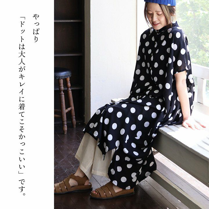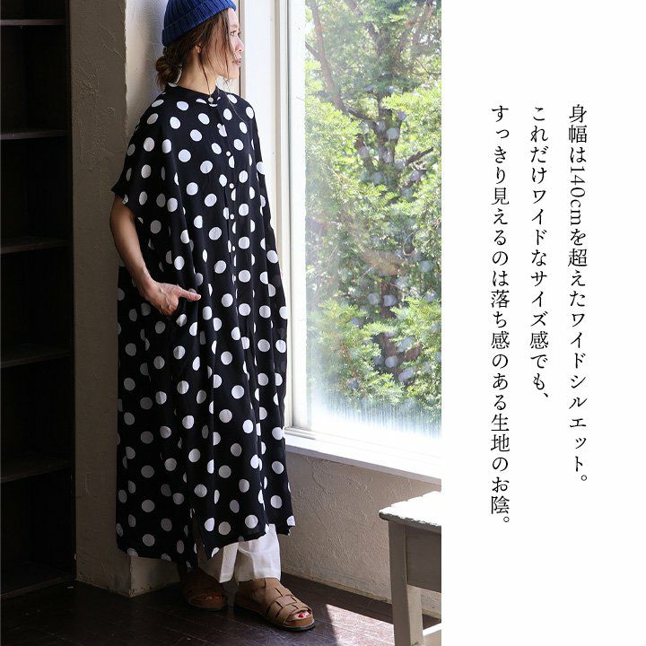 他の画像を見る 「ドットは大人がキレイに着てこそかっこいい」。 ワンピース ワンピ シャツワンピ レディース バンドカラー ドット柄 総柄 レーヨン100 軽い 薄手 涼しい ゆったり 体型カバー 大きいサイズ カジュアル 春 夏 秋 パティ COLORK カラック 2~3日でお届け 販売価格 ¥ 6,490 税込 在庫切れ カートに入れる お気に入りに登録する