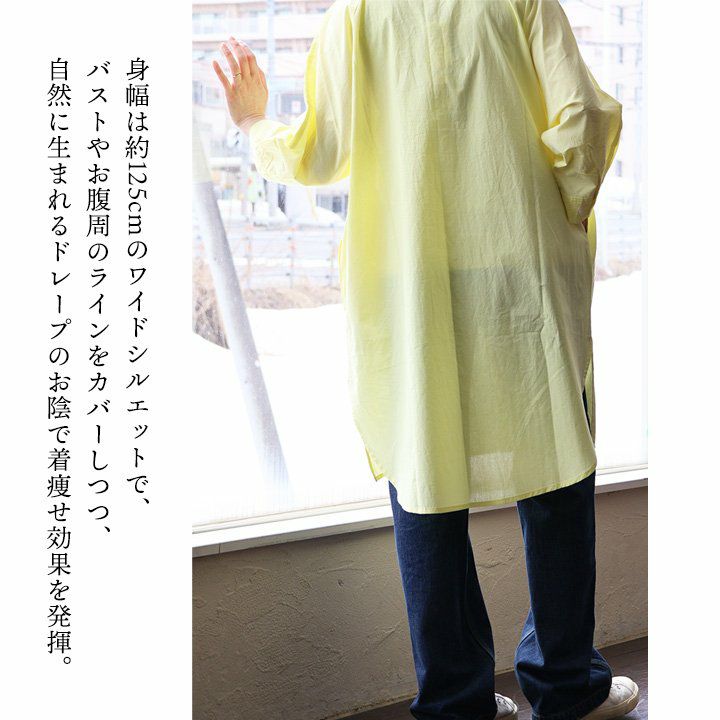 他の画像を見る 爽やかで、涼しげで、軽やかで、着痩せまで。 ワンピース シャツワンピ シャツ 長袖 レディース お尻隠れる 無地 薄手 綿100% コットン 涼しい 軽い 通気性 大きいサイズ ゆったり シアー 体型カバー 着痩せ カジュアル 春 夏 パティ 2~3日でお届け 販売価格 ¥ 5,390 税込 在庫切れ カートに入れる お気に入りに登録する