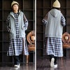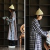 1枚あるだけで、コーデも体型カバーも悩まない! ワンピース ワンピ 長袖 レディース ロング丈 着痩せ 細見え 隠れる スタンドネック チェック柄 切り替え 綿100% コットン 大きいサイズ カジュアル